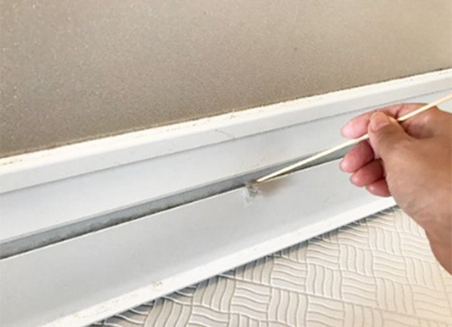 - 湿気を含んで、ホコリが重くなっていますので、竹串などでホコリをかきだします。