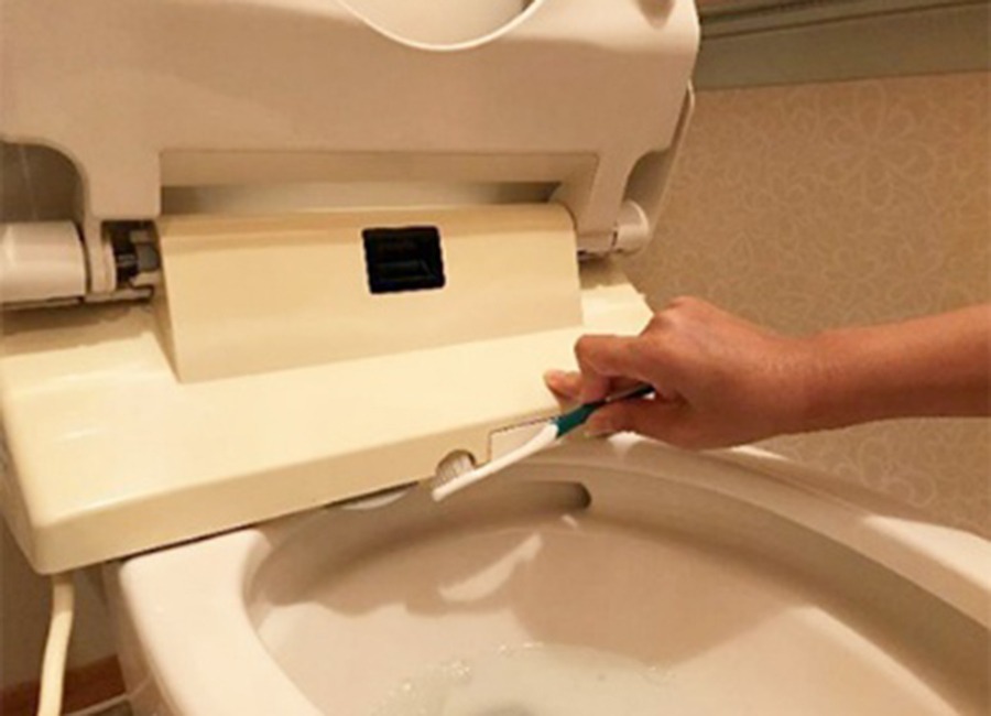 - 便器の縁の上部や縁裏を拭く。